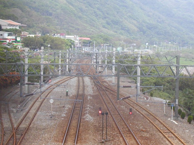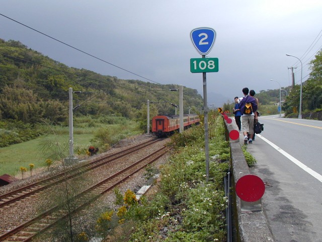 ▼▲沿著2號省道往貢寮的方向走,沿途剛好經過一列下行的莒光號列車,北迴鐵路電氣化已讓各式的列車能夠穿梭期間