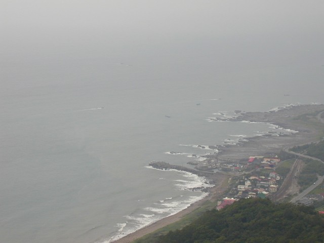從福隆火車站走至省道,左轉一直走至一座加油站,再左轉便進入往貢寮的方向,沿途都有路標指示並不難認。途中會經過福隆海水浴場以及龍門露營基地,其實如果時間夠的話,可以規劃個兩天一夜的行程,晚上在龍門露營區休息,也算是一種不錯的選擇。由於我們一行都抱著不到草嶺心不死的決心,因此縱使一路上天色異常陰霾,我們還是照著計畫往遠望坑前進。不曉得是老闆亂講還是我們腳力較差,還是邊走邊照相的緣故,似乎花了比半小時還久的時間才抵達遠望坑。