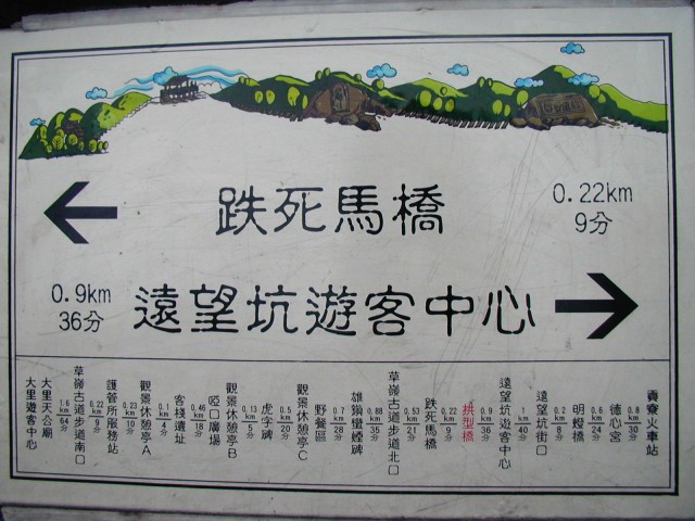 ▲▼這裡可以看出草嶺古道走完,各景點之間所必須花費的時間,不過我們似乎都比上面寫得時間要快個一半。下面是跌死馬橋,死肉榮每次都是他的鏡頭