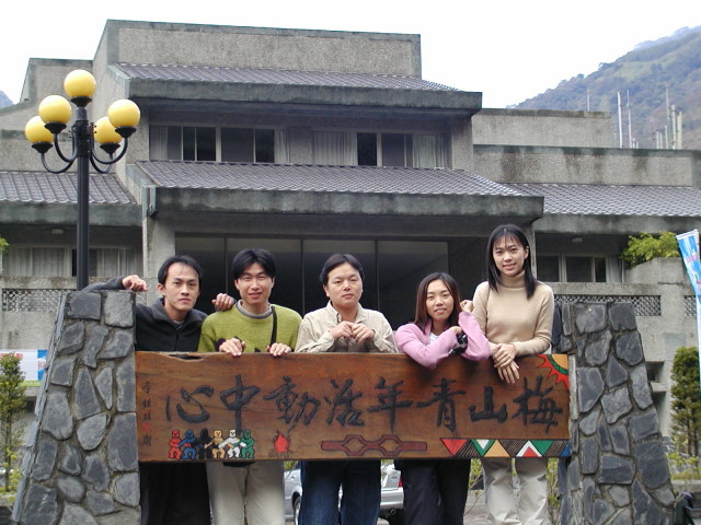 很快的,我們到了梅山青年活動中心(為什麼會很快?因為有人在後面一直催司機說:不是說要到了嗎!?)說真的,梅山中心的設備真的不錯,房間也蠻乾淨的,不像以前我住過的救國團活動中心大多是髒兮兮的…大概是現在也面臨轉型吧?想想,連「反共」的名稱都拿掉,變成了救國團旅行社了,真的是時代在改變,我們也不得不變啊!晚上附近烏漆嘛黑的,也不知道要走去哪,只好回房間玩牌,沒想到卻造成了悲劇二的發生。因為玩牌輸了,雅惠首先被用唇蜜畫臉畫得亂七八糟,肉榮、小金門、我相繼被蓋棉被毒打,因為我們都在牌桌上慘遭Patti的蹂躪..