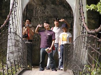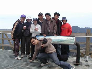 名的文山溫泉,那是一處位於溪谷旁的野溪溫泉,得走一段步道、經過一個吊橋下去,泡溫泉不用收費,總共有三個池子可以泡,不過我們只是純參觀沒有泡,但那裡真的不錯,選擇一個非假日的時候去泡個野溪溫泉應該是很棒的。由於中橫德基路段九二一崩塌無法通行,因此我們便走台14甲回去,在經過合歡山時當然要去吃大腸包小腸與喝咖啡,合歡山的溫度很低,風又大,感覺超冷的,這時候來一個大腸包小腸與熱熱關東煮,真是太棒不過的事了,我們還跟老闆拍起DV來,「因為有他」,搞到後來老闆的表演居然可以比雙賤還冷,真是夠了。清靜農場這裡居然也開起了7-11與星巴克,號稱是亞洲最高的Starbuck,要不是剛剛在合歡山已經喝了一杯,其