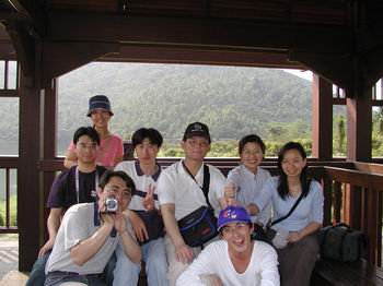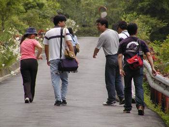 開始進入中橫公路了,目的地是布落灣,那裡正在舉辦百合花季的節慶,到那一看還真的是滿山坡的野百合耶!第一次看到這麼多的百合齊放,好漂亮,拿起相機來便狂拍了,花正是我最喜歡拍攝的主題之一。二點多便到天祥青年活動中心辦住房了,因為大家真的是累翻了,早早到飯店休息吧!我們住的是八人的合式房,整頓好行李、洗完澡,躺著很快便睡著了,直到六點半醒來吃晚餐,晚餐是跟活動中心預定的合菜,八人一桌1200,一開始吃還不會覺得怎樣,但一看到隔壁桌的菜色,挖哩咧!相形見拙,人家還有溪蝦什麼撈什子的,我們吃的是平民餐嗎?也對啦,一人150是想要吃多好,哼!害我晚上又想吃泡麵,但慘的是在路上的7-11居