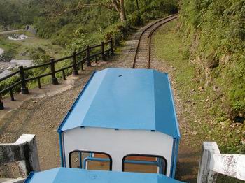 名的文山溫泉,那是一處位於溪谷旁的野溪溫泉,得走一段步道、經過一個吊橋下去,泡溫泉不用收費,總共有三個池子可以泡,不過我們只是純參觀沒有泡,但那裡真的不錯,選擇一個非假日的時候去泡個野溪溫泉應該是很棒的。由於中橫德基路段九二一崩塌無法通行,因此我們便走台14甲回去,在經過合歡山時當然要去吃大腸包小腸與喝咖啡,合歡山的溫度很低,風又大,感覺超冷的,這時候來一個大腸包小腸與熱熱關東煮,真是太棒不過的事了,我們還跟老闆拍起DV來,「因為有他」,搞到後來老闆的表演居然可以比雙賤還冷,真是夠了。清靜農場這裡居然也開起了7-11與星巴克,號稱是亞洲最高的Starbuck,要不是剛剛在合歡山已經喝了一杯,其
