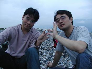 餐,往池南森林遊樂區去,那地方就在鯉魚潭的旁邊,記憶中之前跟家人來這住合家歡時曾經來過,但印象已經模糊不清了。由於時間還早,因此沒有買門票便衝進來了,也還好沒買門票,不然我肯定慘了,因為裡面實在鳥,沒有什麼地方可以逛不說,步道之間都是蜘蛛網,唯一的收穫是拍到一隻蜥蜴。滾離無聊的池南,再到鯉魚潭晃,此時太陽出來了,天氣突然變得好熱,完全是夏天的感覺,穿著長袖的我簡直快中暑了,又不想把明天要穿的短袖拿出來換,只好硬撐,後來受不了,脫掉襯衫穿著內衣到處跑,真是台客。一般人來鯉魚潭都會在遊客中心那附近玩(我們上次來也是),其實它後方還有一個環潭公路,可以在那裡走走或是騎腳踏車,我們這幾個懶惰鬼當然不可能去走或期車,直接開車進去環潭一圈,到此一遊。看看時間還早,到美崙山公園去,那裡更無聊,大概只適合給老人去那裡唱卡拉OK吧!我們幾個乾脆在那裡拍DV玩起無聊的表演遊戲,嘿嘿!