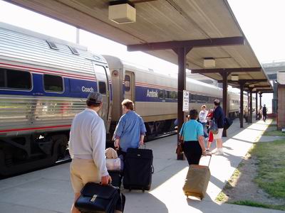 早上六點半就爬了起來,盥洗之後再把這些盥洗用具、電腦等收到行李箱李去,然後開始弄早餐吃。我的如意算盤是弄叉燒包配豆漿喝,不過微波爐弄出來的叉燒包裡面居然硬得跟石頭一樣,根本難以下嚥,看來這種冷凍包子類的一定要用蒸的才行,哼!蒸就蒸,但沒時間了以後再說,最後啃了一塊微波炸雞就算了,時間也差不多便出門去搭八點二十八分的火車。跟Jay一路走到North State St.上,大清早的路上冷冷清清的,只有一些運動的人晃來晃去的,經過Starbucker我便又跑進去買了一杯熱拿鐵,每次去玩出發前如果能喝杯咖啡是再好不過的了。走到火車站,沒一會兒就聽到廣播說火車在底特律那邊誤點,要晚十幾分鐘,於是便只好坐在候車室等,一旁有一堆不曉得是國中生還是高中生也要去芝加哥玩,機拉刮拉的吵個沒完,真的是外表成熟但行為幼稚。最後火車終於姍姍來遲,第一次千眼看到美國這種州際火車,真的很大一台,不過大概不是假日沒什麼人坐,所以只掛了五節車廂。非常奇妙的是火車居然也沒有劃位,上去之後就各憑本事找位子坐,還好我們這裡算是比較前面的站,空位還很多,於是就隨便選了個位子坐了。火車再開往芝加哥的途中,會離開密西根州,經過印第安那州,最後再到伊利若州,也就是芝加哥的所在州,一路上風景不斷地變換,灌木叢林、草原、農田、工廠等等,各地方的景致真是各有特色,最令人驚奇的是那個貨櫃火車每一輛都超級長,給他算了一下居然有120節,好驚人啊!途中還發生關廁所意外,我們那節車廂的殘障廁所的鎖壞了,進去之後上所門就打不開,一開始關了一個小孩子,小孩嚇得哭了,拼死命地敲門,起先我們還以為裡面是在打小孩咧!後來請人拿鑰匙來開門,把他救了出來,但後來又再度關了一個大人,真是不勝其擾。