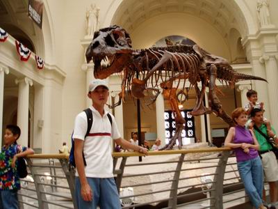 結束水族館的行程,步行到附近的費特自然史博物館,為一富麗堂皇的古典建築,於1920年落成,有著眾多的希臘式迴廊與巨大樑柱,原本是設計用來存放1893年哥倫比亞博覽會所蒐集的一些文物,所收藏的文物多達二千萬件,因此在單一時間裡所展出的數量也都只由百分之一而已。此時的展覽的主題有恐龍、埃及文物、印地安文化等等,由於內容實在太多根本無法細看,只能挑幾個重點瀏覽了。中午就在那裡吃麥當勞,點了十塊雞塊餐,為何台灣的只有六塊雞塊餐?而且飲料還可以自己續杯到肚子爆掉為止,在這理我不禁有個疑問,既然飲料可以續杯,那為何還要分大中小的SIZE?有笨蛋會去買比較貴的大杯嗎?
