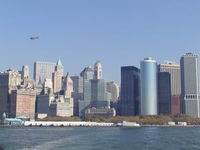 從底特律到紐約的飛行時間約一個半小時,在飛機上我實在很想睡覺,但是還是沒辦法睡著,只能睜著眼睛發著呆,真是痛苦啊!到達紐約的拿瓜達機場(La Guardia)要降落時,不知道是怎樣飛機居然拉起機頭重飛,轉了一大圈才順利降落,身在紐約,就很容易讓人聯想到911劫機那檔事,實在有點恐怖。出了機場,本來是想把另外一個大的行李箱寄放在機場的置物箱等回去實再拿的,但拿瓜達機場實在很鳥,居然沒有提供這種服務,只好提著行李搭計程車去了。初到紐約,給我的印象是「繁」與「亂」,路上的車子橫衝直撞的程度不下於台北,已經習慣安娜堡人的溫和開車態度之後,一開始還真的很不習慣,再加上計程車裡不是很乾淨,味道也不是很好,又想睡覺,一點興奮的心情都沒有。本來想先去搭渡輪看自由女神像的,但是居然不能提行李上船,哼!只好再搭計程車先回旅館放行李。其實我一開始就說要先去旅館,但松鼠一直說要先去自由女神那會比較順路,順個頭啦!不能去再怎麼順有個鬼用,何況在怎麼說提個行李要去哪裡都是沒辦法玩得盡興吧!拜託,倒底會不會計畫啊,真的不該都放手讓她們弄行程的,晚上得再好好地重新討論確認一次才行。