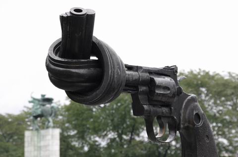 出了中央車站,沿著42街一直往東走,就到了聯合國總部。聯合國雖然在美國境內,可是不屬於美國的領土,是獨立的領土,周遭的警衛戒備一樣十分森嚴,若要進去參觀,安檢手續十分嚴格。不過因為時間不夠,我就沒有進去了,只在外面看了看,拍了門口那個十分有名的反戰雕塑作品。