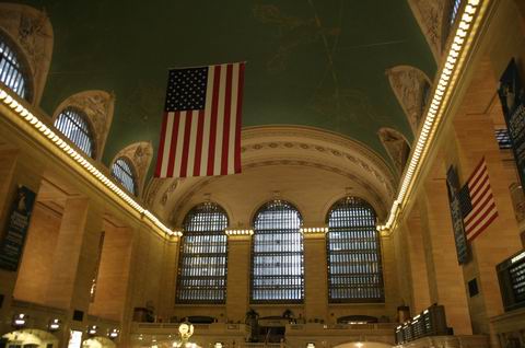 今天我獨自一個人走。我把行李都打包好,放到甲斯騰的車上,等他們開車回去之後我在去拿(他們要要繼續待到下禮拜),實在不想背著重重的行李在紐約街上逛,會累慘。吃過難吃的鍋貼當中餐,跑去買了一杯快可立的珍珠奶茶,開始亂逛。本來想進去美術館的,但天氣似乎越來越怪,後來颳起了一陣陣的風,要下大雨了,趕快用衝的到地鐵站躲雨,雨下得超大的,這時我才想起來昨天西北說班機取消”Due to weather condition”,可怕,老美的氣象欲報真的這麼準啊?下雨也不能去看球了,索性直接搭到Grand Central那一站,去參觀中央車站。中央車站是一個相當大的車站,裡邊的人潮人來人往,逛著逛著,忽然被一個人叫住,啊!是同學斐倪克斯,是怎樣?紐約就這麼點大而已嗎?連走在路上都會遇到同學。後來要出去,發現有一些入口可以直接上到樓上的俱樂部去,有錢人的場所,我們要從那裡出去,還被特提醒不准拍照,哼!誰想要拍啊。