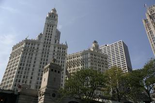 水灌進來。閘門有兩道,先開第一道讓船進來,關起閘門再開第二道進運河,閘門在開的時候就會看到外面的湖水不斷地湧進來,十分有趣。運河沿岸有著各式各樣的建築,當介紹到席爾斯大樓時,解說員還特別提到當今世界第一高的建築物是在台北,哈哈!