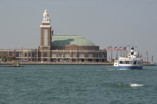 的商店,還有各式各樣的船可以搭出去遊湖,或者進到芝加哥運河瀏覽沿岸的建築物。