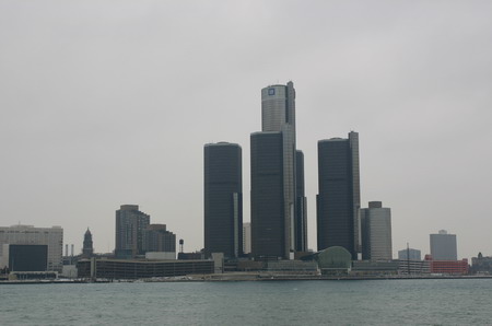 嘿!其實也什麼。底特律跟加拿大的溫莎市(Windsor)就僅一條Detroit River之隔, 其實那也不能算是河,而是兩個湖之間比較狹窄的部分,看起來像是個峽灣,這也是底特律市名的由來,法文d’etroit就是峽灣的意思。我們開車從底特律市中心的隧道過去,幾分鐘的時間就到了加拿大境內,要等入境之前米森同學還耍寶下車逛街,差點被加拿大人開槍,以為他要偷渡,哈哈!(但其實也不會有人從美國偷進加拿大啦,都是偷渡進美國)而由於是第一次入境,所以還得去移民局那裡蓋章。跑去一家港式飲茶吃飯,叫了一堆點心來吃,價格比香滿樓還便宜許多。後來去河邊照了幾張相,由於天氣不佳又太冷,再加上手邊也沒有溫莎市的地圖不大敢亂開,就又滾回來了。入境時被那個入境檢查員盤問、又打開車子檢查了一番才放我們走,真是夠了。
