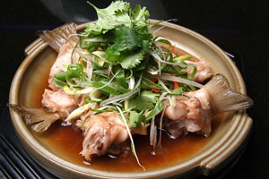 研究完菜單,決定點一份套餐跟單點河魨肉皮綜合刺身跟河魨魚排酒蒸。河魨魚皮刺身的膠質很多,吃起來口感十分特別。魚排酒蒸是河魨的下巴去清蒸再淋上醬汁蒸煮,雖然肉不多不過肉質滑嫩,相當不錯的一道菜。至於套餐的內容,由於都沒有河魨料理,跟一般的日本料理套餐沒多大不同,就不多贅述了。後來看到有人點了一道「河魨氣囊三杯」,香味四溢,好像頗不賴,有機會再去吃吃看。