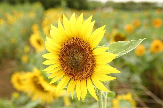 接著離開關西,前往位在觀音鄉的向陽農場去看向日葵,很幸運的,到了那裡雨已經停了。向陽農場是一座以向日葵為主題的觀光農場,可以自己下田去剪自己喜歡的向日葵帶回家,且進去參觀不用收門票喔,只有剪了花才要算錢。那邊栽種的向日葵品種相當的多,有什麼光輝、莫內、月光、可可等,仔細觀察就可以發現各種品種之間的差異。覺得這個農場的主人也是相當不容易,能夠把一個平凡無奇的向日葵田經營成如今這樣一個著名的觀光農場,我想除了機運之外,持續地用心經營也是因素之一吧!