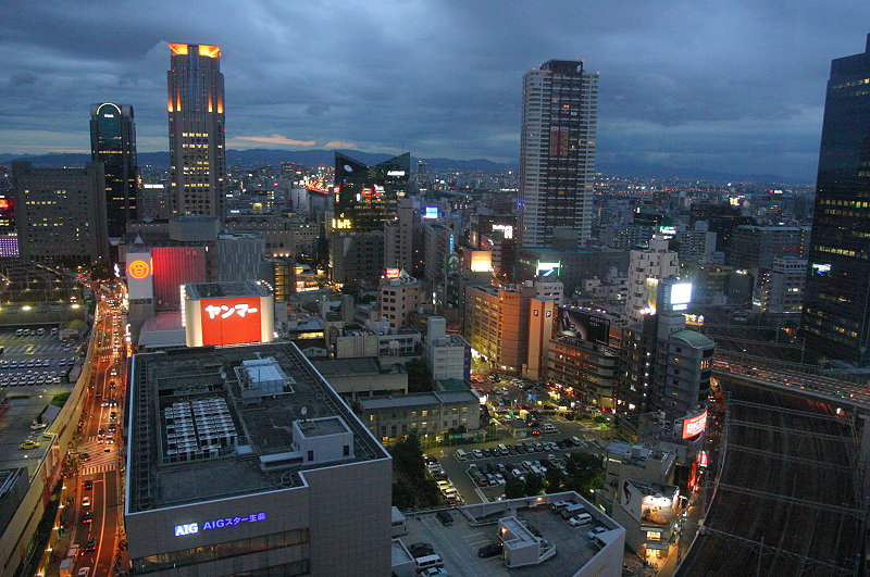 穿過整個大阪城公園之後,搭地鐵到梅田。這一帶十分的熱鬧,百貨公司、商店街林立,從地鐵站就可以經由地下商店街直接進入百貨公司。到HEP FIVE去搭摩天輪,這裡有點類似美麗華的那座摩天輪,一樣是蓋在大型百貨公司建築物上的巨型摩天輪。由於此時天色已漸暗,摩天輪緩緩上升隨著,繁鬧的大阪市區完整地映入眼簾,往西面遠眺還可以看到六甲山。在HEP FIVE裡逛了一陣子,但越逛越不自在,因為放眼望去都是濃裝打扮的日本妹,我們則是一身「樸素」的疲憊狀,還背個大背包,店員看了大概也懶得理,為了不自討沒趣,趕緊閃人。到地下美食街吃完喬麥麵定食,店員看我們支支吾吾半天,居然用問中文跟我們交談,哈!真巧,遇到會說中文的店員。吃飽之後,搭著地鐵晃到心齋橋,哇!好熱鬧的地方啊,尤其是道頓崛,好吃的餐廳多的不計其數,當下決定明天一定要來這裡吃大餐。