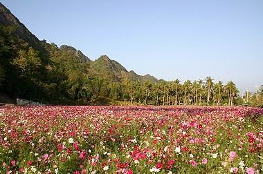 ↑↓高雄縣美濃鎮除了紙傘、板條外,最近還多一項景觀~波斯菊花海,一大片種植著波斯菊的農地,依山更襯托出美麗的鄉村田園風光。