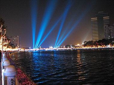 ↑經過市府長期的努力規劃,以往的臭愛河現在已經搖身一變,成為人氣相當旺的夜晚散步、喝茶勝地。