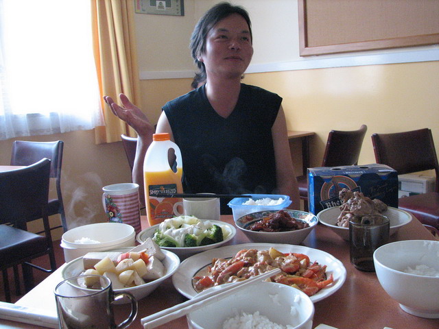 在NW超市買完食物回YHA之後,小金門出現了,他還撿了一位企管系的學妹一塊旅行,他們是在基督城時遇到的,現在就一起跑南島旅行,真是巧啊!晚餐就由大廚小金門準備了一頓豐盛的晚餐給我們享用,真的很棒呢,在國外還可以自己搞出這樣的菜來。晚上時間有點晚了,四個人跑去海邊吹海風、照相,結果被當地的年輕人挑臖比中指,真是無聊,有些紐西蘭年輕人對於黃種人似乎還有些不認同。