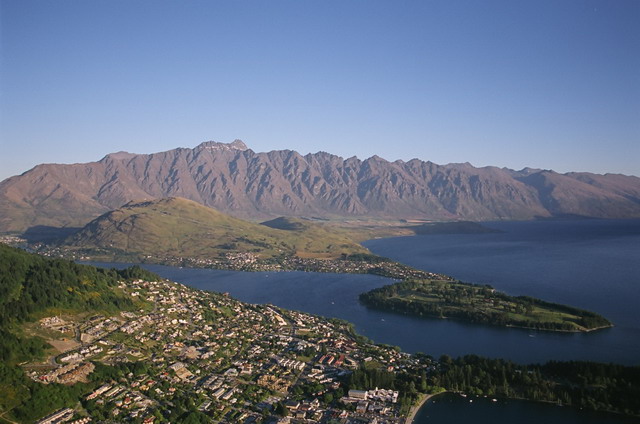 晚上照著旅遊書的介紹到鎮上的一家日本料理餐廳吃飯,嗯,好險沒有被騙,味道還不錯,價錢也還能接受。填飽肚子後,搭Skyline纜車上山去俯瞰黃昏下的皇后鎮,纜車站旁邊還有滑板車以及高空彈跳可以玩,那個高空彈跳未免也太高了,會有人敢去跳嗎?