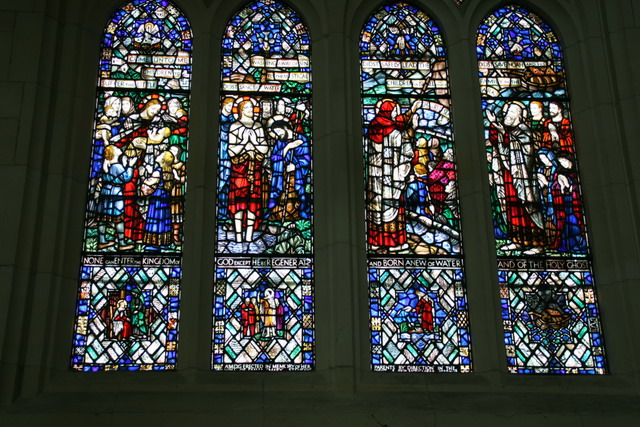 ▲但尼丁的第一間教堂以及裡面的琉璃窗