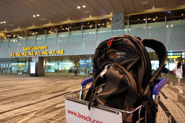 來到機場才四點半,整個二航廈空空蕩蕩的沒什麼人,看來旅遊旺季應該已經過了(還是經濟不景氣?)辦完保險,出了關,六點四十登機往新加坡出發,要在新加坡再轉往瑞士蘇黎世的班機。第一次來到新加坡機場,感覺好大,由於轉機等待時間有兩個小時,想去找信用卡貴賓室來打發時間,但上網一查(機場裡有一些免費的電腦可以上網)才發現中國信託的白金卡已經把新加坡機場的貴賓室使用權取消了,得升級到鈦金卡或是商旅卡才有這樣的福利,可惡。