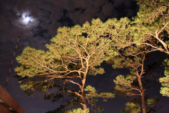 別館後方是我們公司的會館,當天晚上就是住在那裡,裡邊有一大片松樹林,晚上可以請會館的阿姨把庭園的探照燈打開,坐在松樹下邊泡茶邊聊天,邊欣賞這百年老松。晚上睡覺時聽太多日本神風特攻隊的故事,還據說有日本人曾在松園別館切腹自殺,歐~我後來開著燈睡覺。