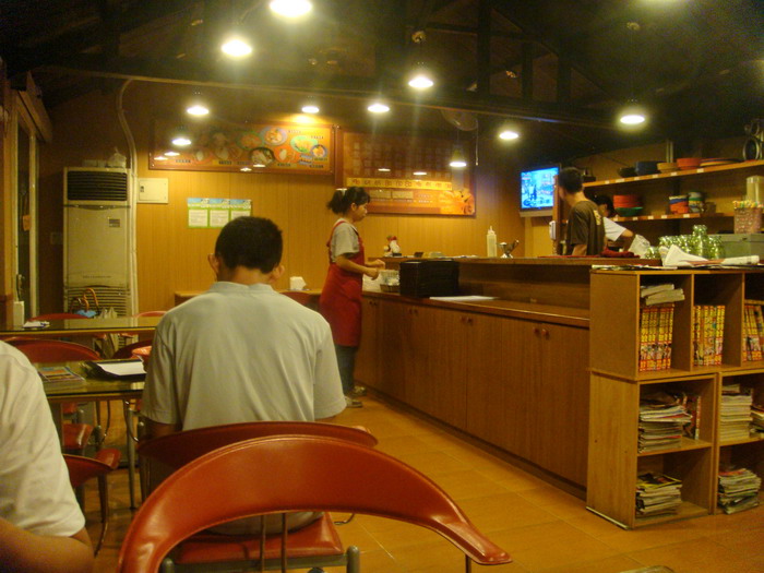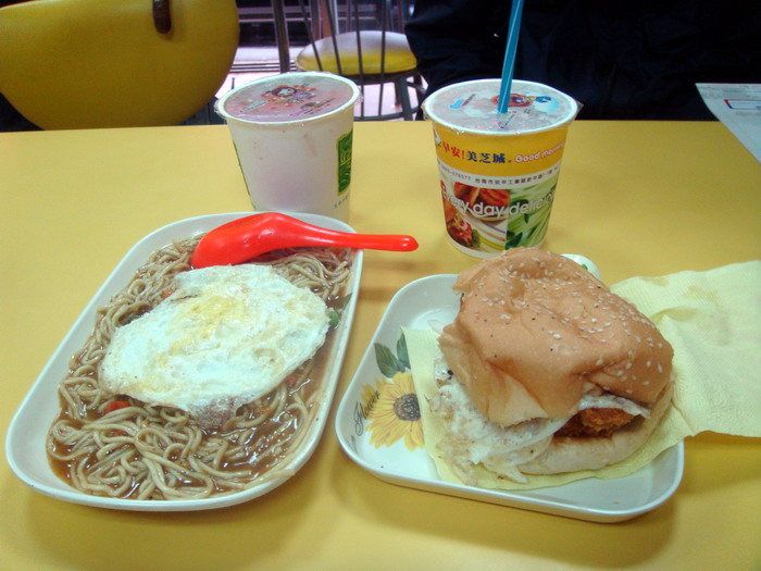 ▲壽豐會館平常沒有管理人員在這,因此給了我們餐卷叫我們自己滾去街上的早安美芝城吃西式或是另一家中式豆漿燒餅油條早餐店,我們選擇了西式的喀啦雞腿堡與沙茶鐵板麵加蛋。這家早餐店生意還真不錯,一大早就人聲鼎沸,想不到鄉下的早餐店生意也會這麼好,現代人很少自己做早餐了