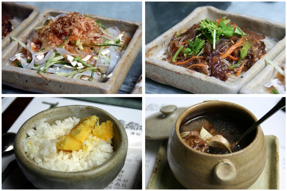 ▲依照人數所點的主菜所送上的配菜、飯與土雞湯