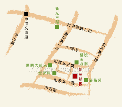 現今再度造訪伍角船板,四周圍已經被高樓大廈所包圍,曾經來過的我們都不得其門而入,更遑論沒去過的人了。最後問了附近大樓的警衛,才從側邊的路進入。這幾年台中重劃區的發展真的是快得驚人,才幾年沒來這裡的街景就彷彿南柯一夢,完全不認識了。