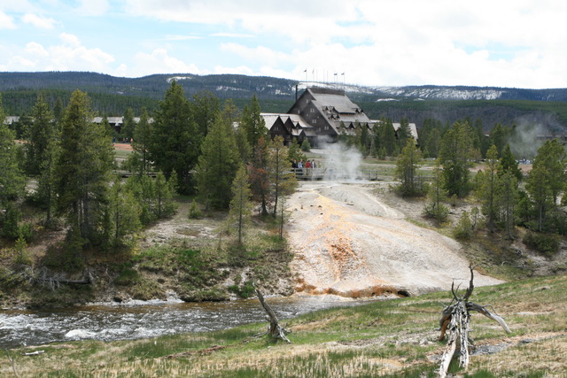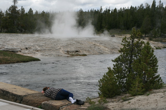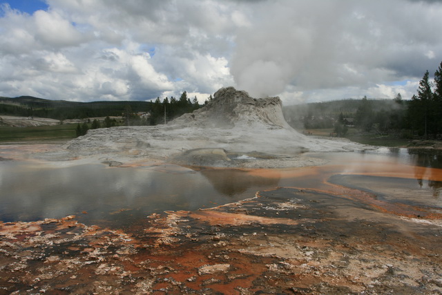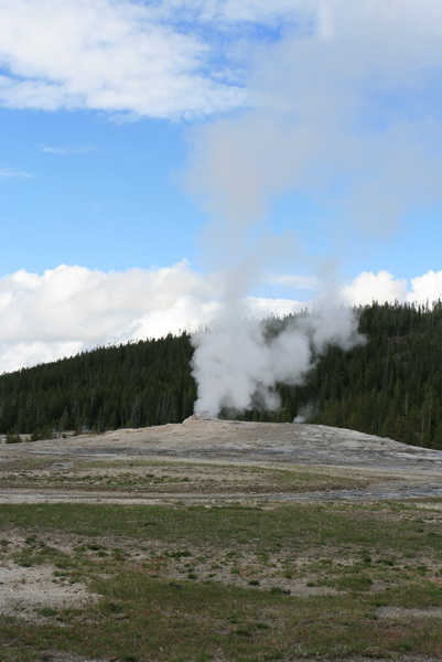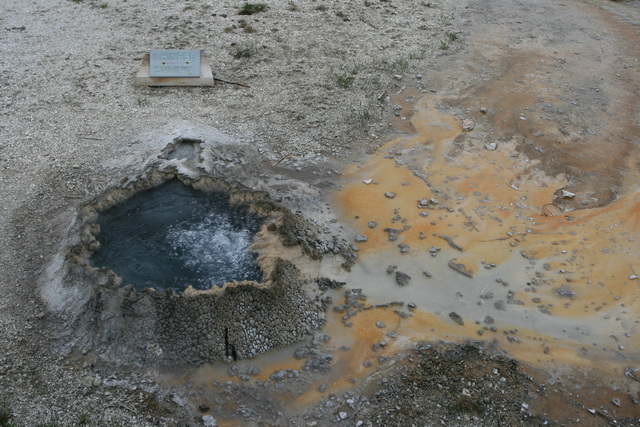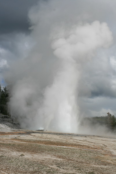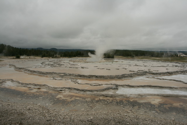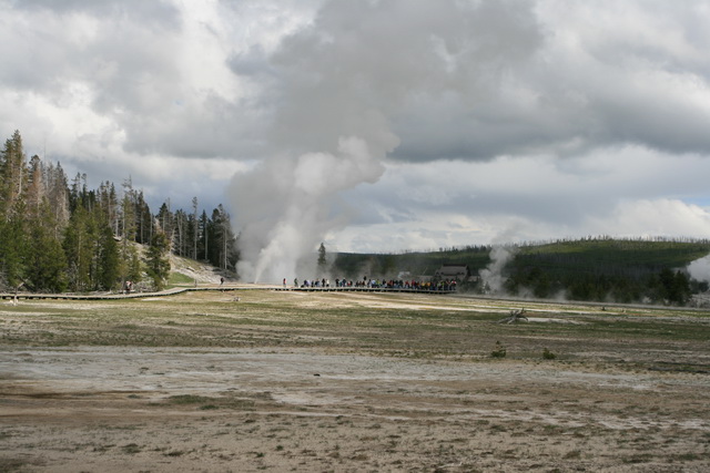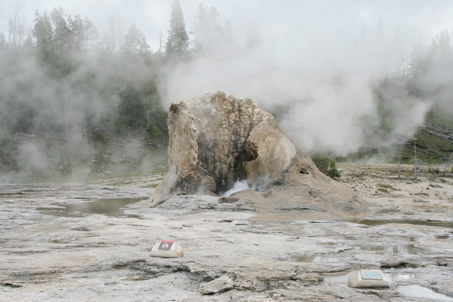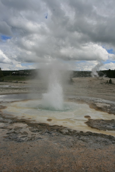↑ 這個大間歇泉的噴發時間還算好預測,只要到遊客中心看好預測噴發時間,前後一小時的等待就可以看到,他噴得比老忠實還要高,且可以更近距離地觀察他噴發的壯觀景象