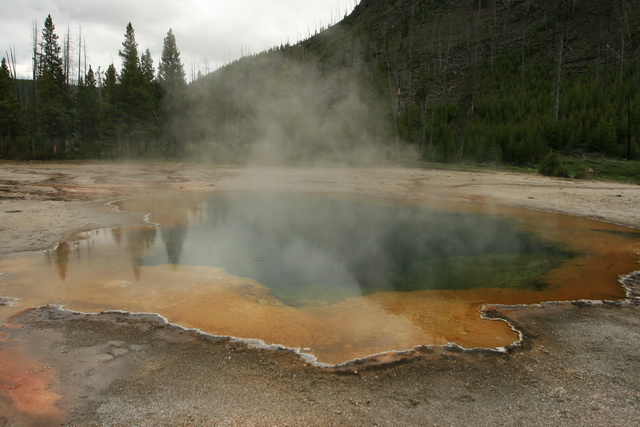 如果你有幸來到黃石公園,卻又不幸地只有一天的時間,那麼你就應該直奔西區去拜訪那些奇特的間歇泉、溫泉、泥泉及氣洞等地熱景觀,這些是黃石最獨特且引以為傲的特有景觀。那裡的間歇泉(Geyser)數量在世界上若說是第二沒人敢稱第一,約有三百多個間歇泉分布在黃石公園內。黃石公園裡間歇泉形成的原因是因為地底下的岩漿距離地表僅有3~5公里,因冬季的降雪極多,提供了她豐富的地下水源,滲入地底的地下水儲存在岩層中,受到地熱持續的加溫由冷轉熱,沸騰後化為蒸氣、水柱,從地表裂縫中噴發出,就形成了噴泉。噴發之後,新的地下水又竄入地表裂縫中,受地熱加溫才能繼續另一次的噴發循環,這就是所謂的間歇泉。