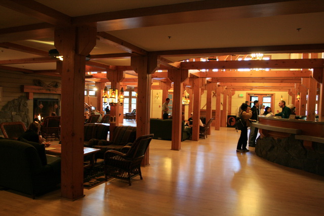 ↑↓ Old Faithful Snow Lodge & Cabins旅館的大廳,附屬有一家餐廳提供餐點服務