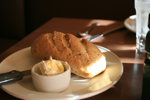 ↓↑ 凱薩沙拉與湯,不信邪點了湯來試試,果真是濃稠得可怕,比稀飯還要濃稠