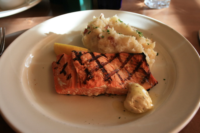 ↑ 今日主菜一:烤阿拉斯加鮭魚 + 馬鈴薯泥