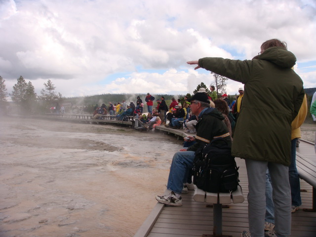 ↑ 時間差不多了,來去等老忠實的表演吧,其實也不大需要預測時間,只要看廣場的人越來越多,就是離噴發時間越近了