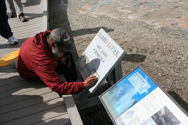 ↑ 噴發完後,公園的工作人員在一旁的板子上寫下下一次噴發的預測時間