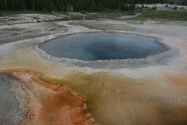 ↑ 彩色鍋噴泉(Fountain Paint Pot),溫泉池往往會呈現這樣湛藍的色彩