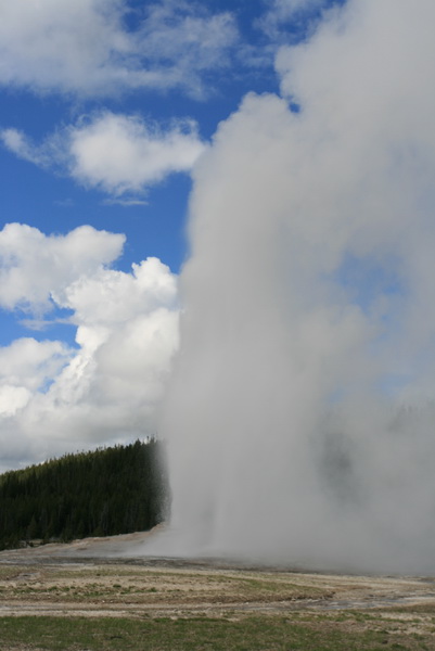 ↑ 噴發中的老忠實噴泉,若是住在老忠實區裡的旅館就可以看上好幾回