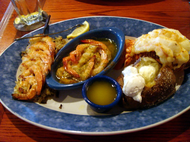 已經餓了一天了在高速公路上就在盤算著到底要吃什麼好料的,結果紅龍蝦(Red Lobster)的廣告招牌就出現在我們眼前,當下就決定吃他了。Red Lobster是美國連鎖的海鮮餐廳,幾乎各大城市都有開店,主要是以緬因龍蝦作為料理的主軸,另外配合當地狀況與時令食材還會推出不同的蝦蟹魚等主廚料理,算是入門級的海鮮餐廳。因為緬因龍蝦在台灣相當不容易吃到,且價格上也會差很多,因此只要是來美國我都會找機會去吃,像上次去佛州玩時,短短幾天就跑去吃了兩次,有次去矽谷出差時雖然已是忙到翻掉,但還是抽空跑去嗑了一頓,因為實在是太美味啦!嗜吃海鮮的人是絕對不可錯過的。