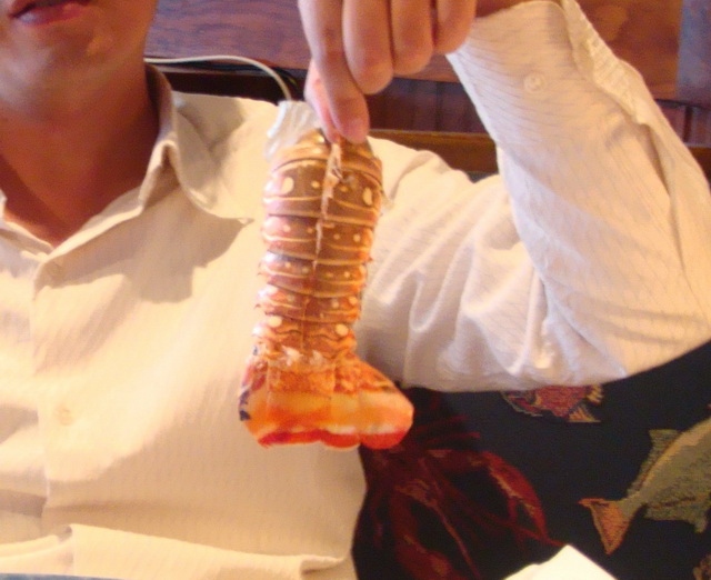 ↑ ↓ 也是服務生推薦的綜合大拼盤,有串烤蝦、鹽焗烤蝦、以及烤緬因龍蝦尾,配上烤馬鈴薯。而重點就在於那個龍蝦尾,沾上那黃黃油油的醬汁,再配上冰涼的啤酒,嗯!只能說美味破表,人生夫復何求?