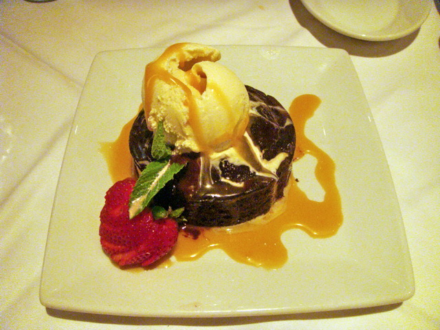 ↑ 餐後甜點:火山巧克力,$15,挖開後中間有著熱熱濃濃的巧克力,好吃!