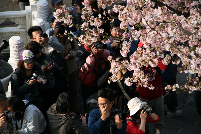 ↑ 櫻花樹下,人手一台單眼+大砲,對著樹上的櫻花狂按快門,這就是台式賞櫻實況