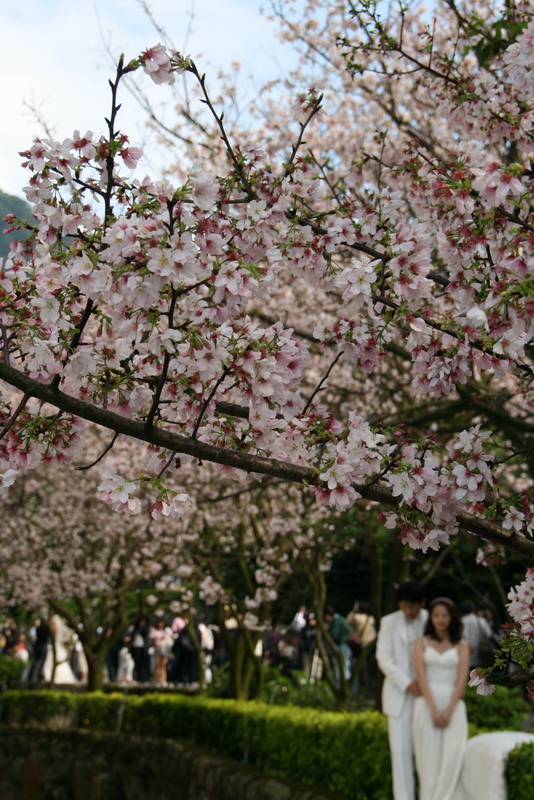↑ 趁著櫻花盛開來出外景拍婚紗的新人