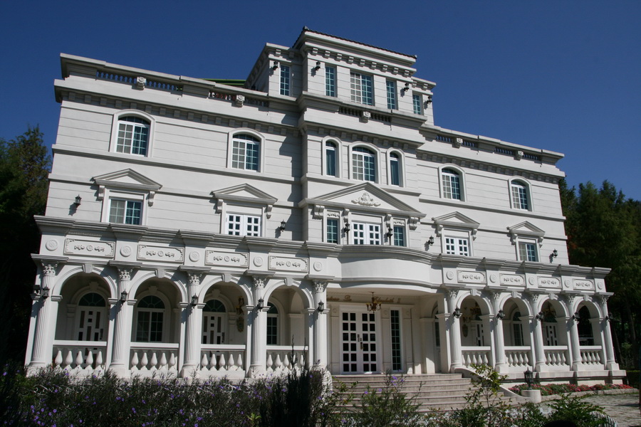 ↑↓↓ 伊莉莎白二世城堡,巴洛克式建築,純白的外觀以及圓形拱柱與迴廊,濃濃的義大利風情