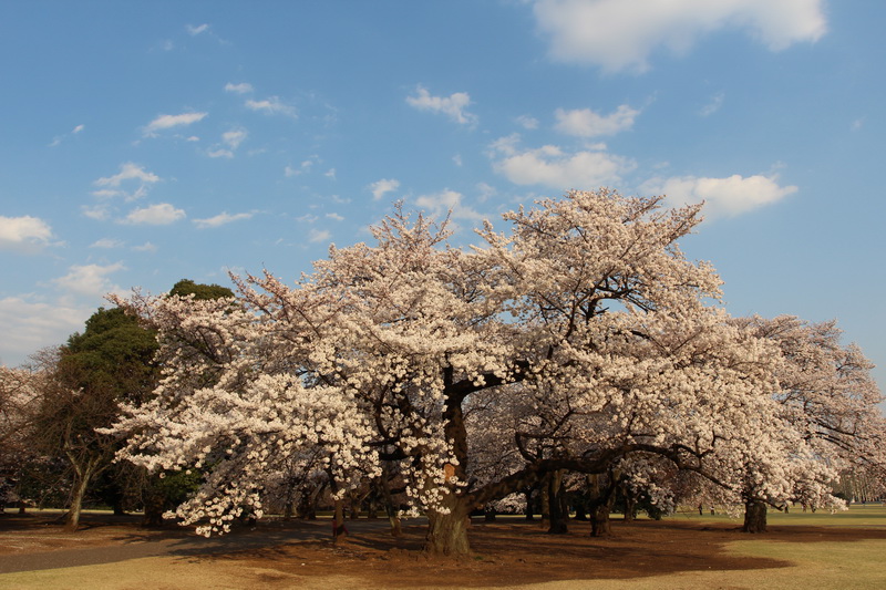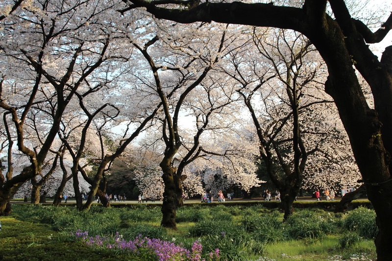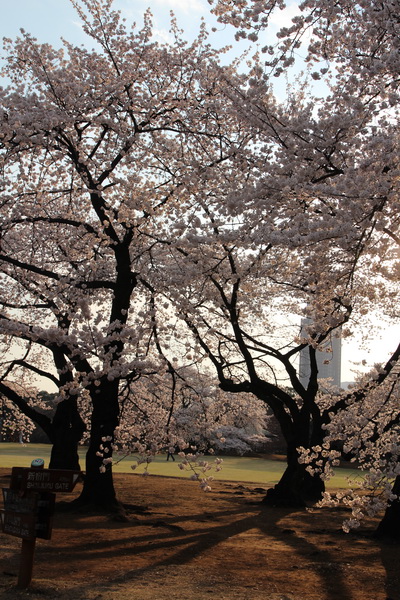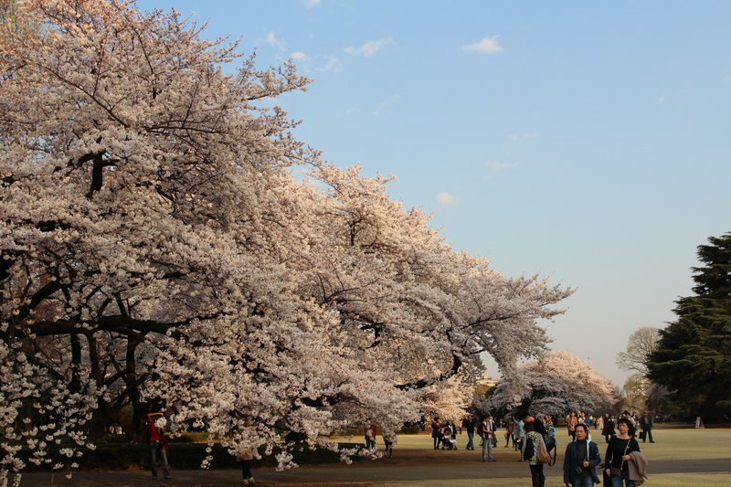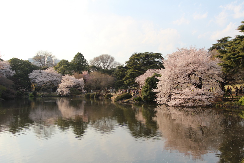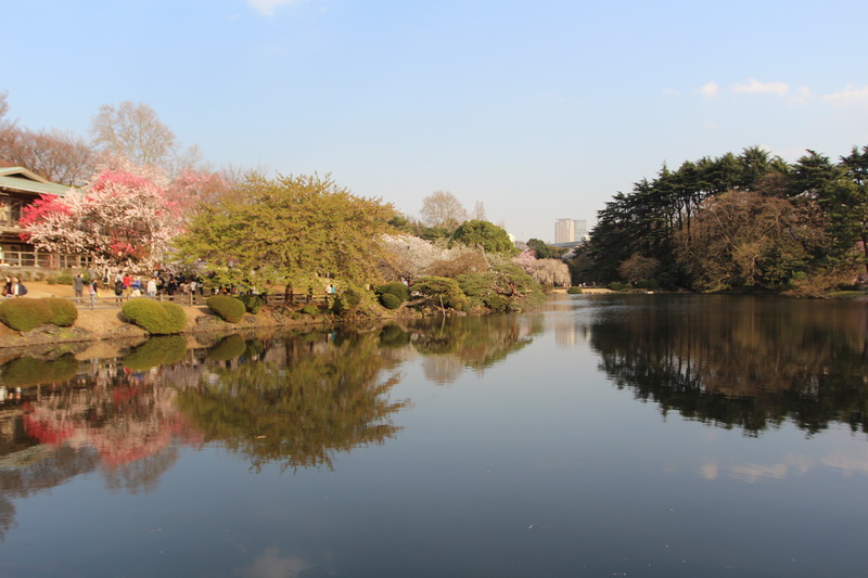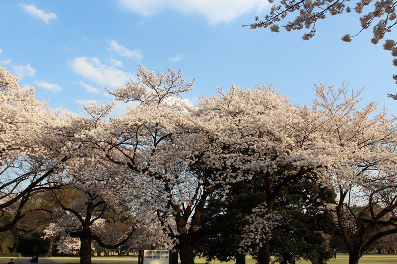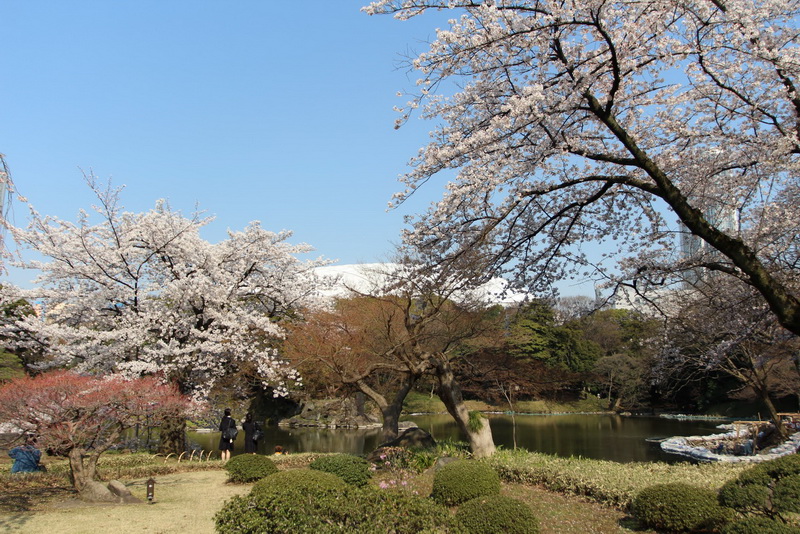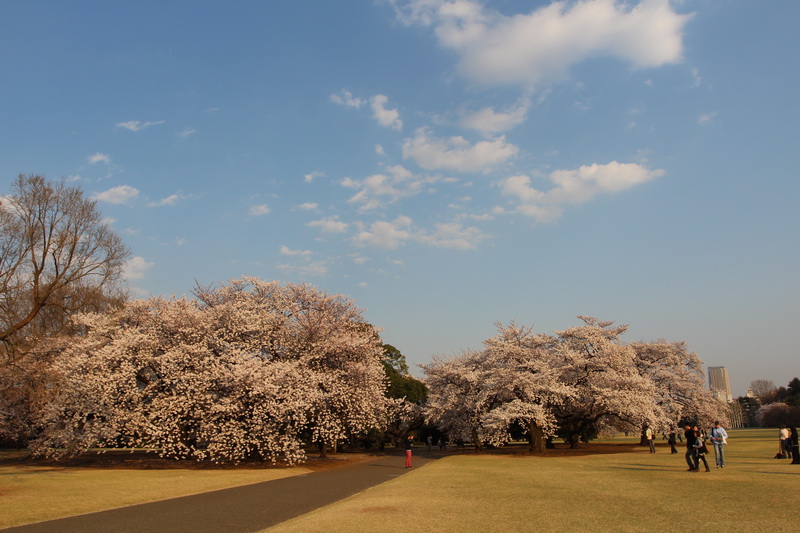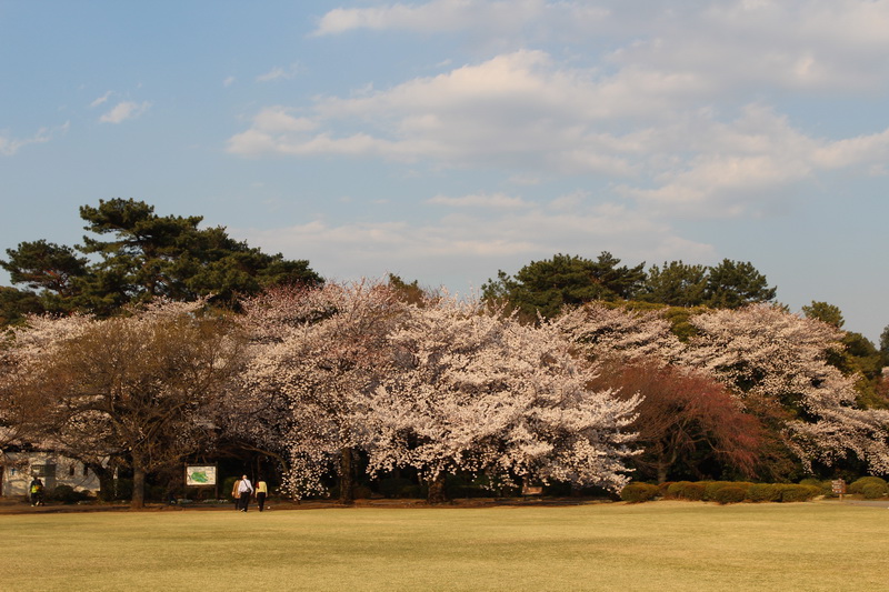 新宿御苑原本是信州高遠藩主內藤家江戶屋敷遺跡,但目前所見的御苑風貌是明治39年所完成的,由法國人亨利、馬魯契內設計改夷,融合日本林泉迴遊式庭園與西洋庭園風格,可說是融合了西方與東方的庭園造景,詮釋出東西合壁的景象。新宿御苑內的櫻花品種多達75種,包括里櫻、染井吉野櫻、山櫻、大島櫻、枝垂櫻等,共有1500多株。