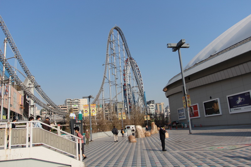 ↑ ↓ 來到棒球勝地東京巨蛋卻無緣進入參觀,好傷心啊!這是一旁的主題遊樂園,時速達130公里的雷豚雲霄飛車