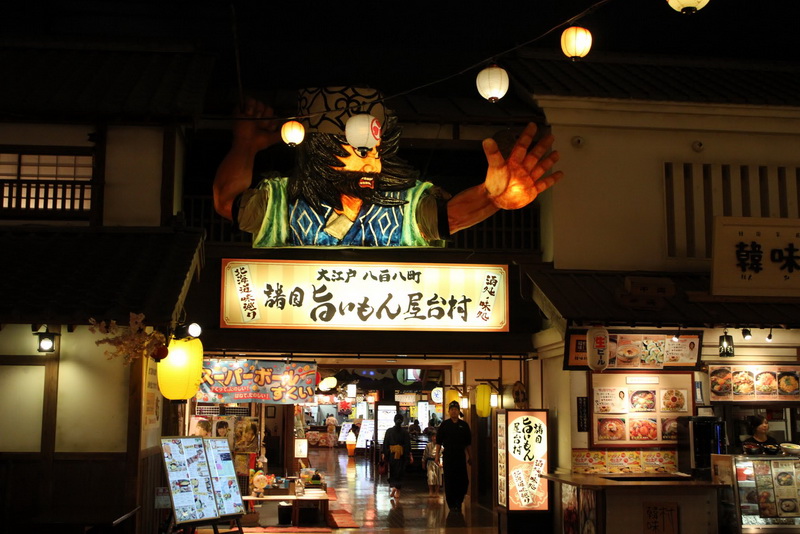 在東京市區想要泡湯,來到這裡就對了。大江戶溫泉物語是一個位於台場的溫泉主題樂園,據說是從地下深1400公尺處所汲取的天然溫泉(我是頗為懷疑,加熱的地下水+溫泉粉還比較有可能),除了一般室內的風呂之外,還有戶外的露天風呂跟日式庭園足湯。整個環境營造出江戶古街的風貌,令人頗有時光倒流的錯覺。