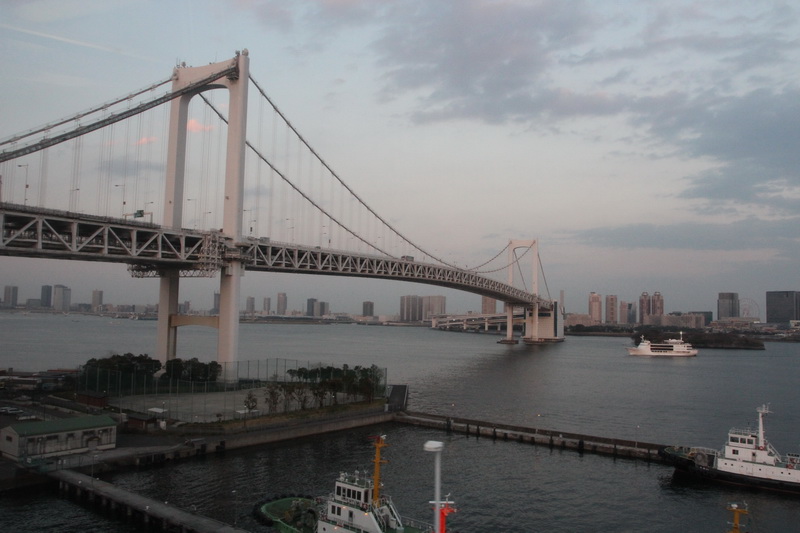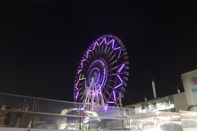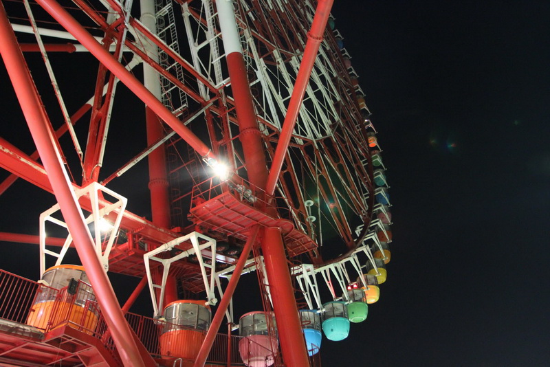 泡完溫泉後,趕著去搭附近的大觀覽車,平日最後搭乘時間是晚上10點。十年前來台場時也曾經搭過,記得那時候的夜景十分的漂亮,還可以看到橫跨海灣的彩虹大橋。時至今日,往都心方向的景觀被新蓋起來的高樓給擋住了視線,再也看不到那十年前記憶裡的景觀了。