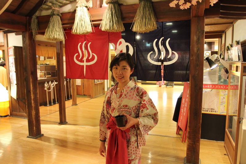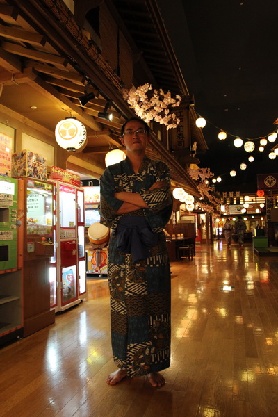 身著傳統和式浴衣,耳邊傳來不斷播放的江戶音樂,嘴裡喫嚼的卻是現代的東京豬排丼,忽然間有種似曾相識的時光平移錯覺,似乎找到了三百年前的自己:我前世應為這櫻花國度的一員,江戶時代的魚販,辛碌一整日後來到這個大浴場,只為消除一天的勞累,尋求那短暫的慰藉……。