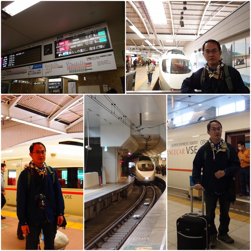 從東京到箱根的交通有很多種方式,最舒適便捷的首推「小田急浪漫特快」,除了有新宿直達箱根湯本的車次之外,還可以搭配購買「小田急周遊票」三日券或二日券,包含了箱根地區的所有交通工具,十分划算。 我們去程時搭的是VSE 5000型,十點新宿發車,十一點23分到達終點站箱根湯本。